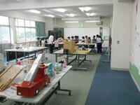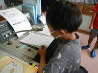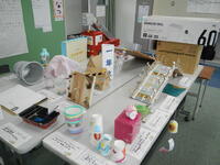 夏休みの作品展が開催されています。展示された全校児童の工作や自由研究、ちょうど1年生が見学に来ていました。
