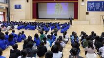 1年生の給食開始。給食ボランティアのみなさんにお世話になっておりました。